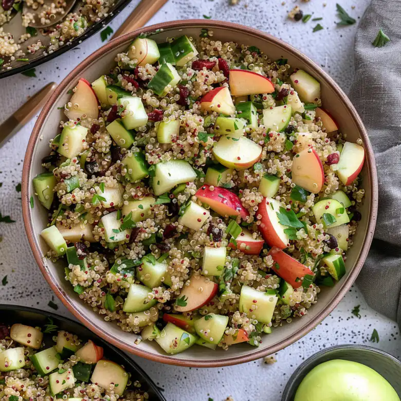 The beauty of this salad lies in its simplicity and speed. Quinoa cooks quickly and provides complete protein, while fresh apples add natural sweetness and crunch. The lemon-based dressing prevents the apples from browning while bringing all the flavors together in a way that feels both satisfying and refreshing.