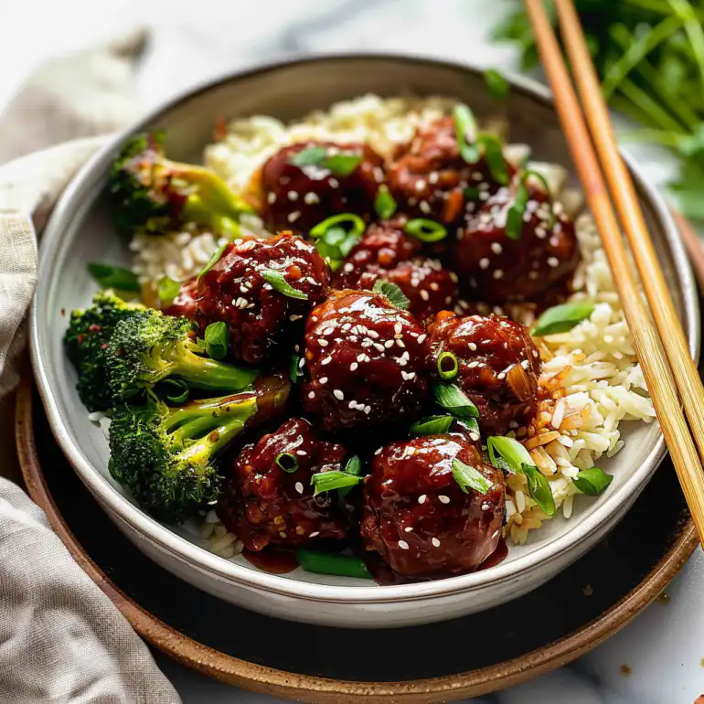 Tender beef meatballs in a glossy sweet-savory Mongolian sauce, ready in just 30 minutes. Restaurant flavors made easy at home.