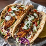 Juicy chicken wrapped in warm pita with vibrant slaw and herby ranch dressing, perfect for a quick weeknight dinner.