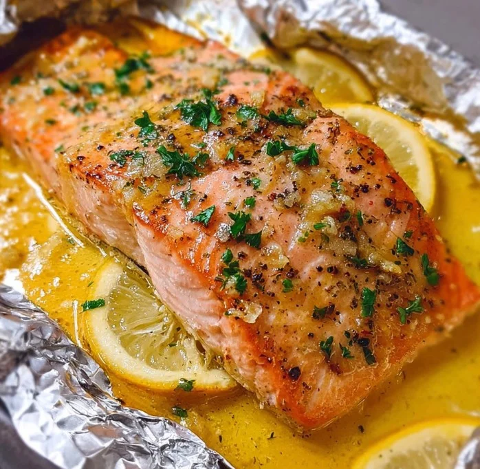 - Then, remove the top foil, switch your oven to hi broil, and spoon the reserved buttery mixture over the salmon for that glorious caramelization.