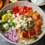 Sometimes, the simplest combinations make the most stunning meals. This Mediterranean Salmon Bowl marries tender, marinated salmon with vibrant, zesty salad and creamy yogurt sauce, creating a culinary adventure that whisks you away to sun-drenched shores. Ideal for busy weeknights, this recipe is a one-bowl wonder that delivers both nutrition and taste, proving that healthy eating can indeed be a delight. Trust me, your family will be begging for seconds—and possibly spoons for licking—just to savor every last bit of that herby yogurt sauce.