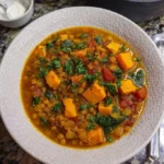 A warm and comforting stew packed with nourishing ingredients like lentils and sweet potatoes, featuring anti-inflammatory spices for a healthy, hearty meal.