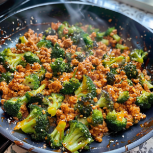 Honey Sriracha Ground Chicken and Broccoli – high protein, fiber-rich, gym-ready!