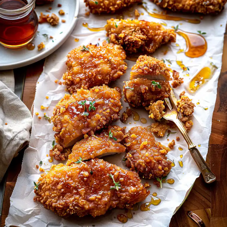The secret lies in the double coating technique that creates an incredibly crunchy exterior without deep frying. By combining panko breadcrumbs with seasoned flour and using a buttermilk base, you get restaurant-quality crispiness from your home oven. The hot honey glaze adds the right balance of sweetness and heat that complements rather than masks the chicken.