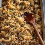 A hearty and comforting beef and rice casserole that’s easy to prepare, making it perfect for busy weeknights.