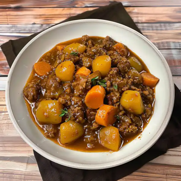 A comforting and classic ground beef stew recipe, perfect for family dinners. Simple ingredients, rich flavor, and hearty vegetables make this a go-to comfort food dish.