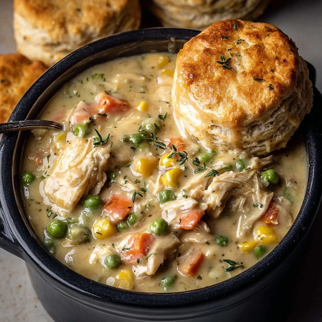 - Scoop out portions of the chicken mixture into bowls and top it off with a warm, flaky biscuit. The first bite will remind you that nothing beats a home-cooked meal shared with loved ones.