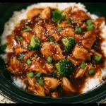 6. Serve over cooked rice or noodles. You could garnish with some sliced green onions or sesame seeds if you’re feeling fancy!