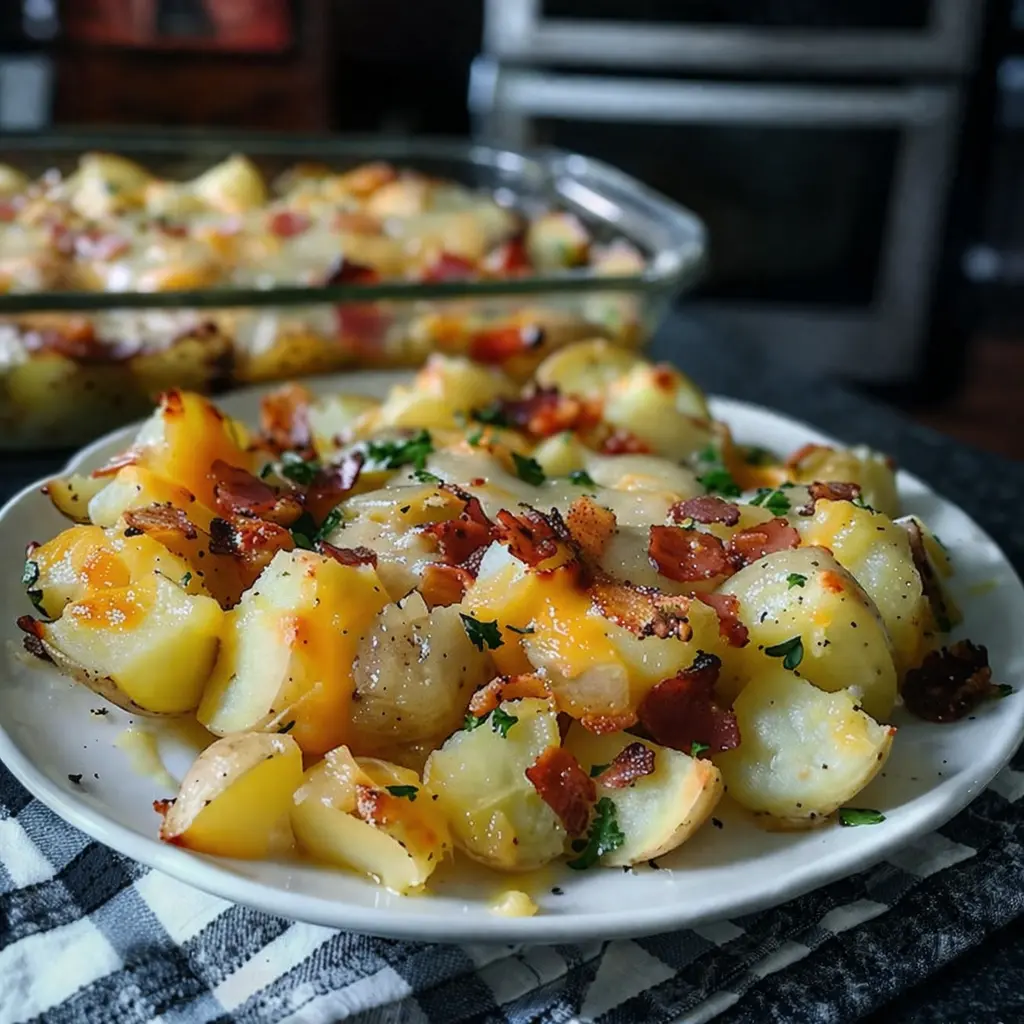 Creamy, cheesy baked potato casserole with bacon, ranch seasoning, and a crispy golden topping. The ultimate comfort food side dish.