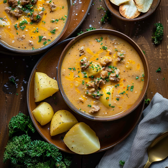 A hearty and comforting soup made with lean ground beef, tender potatoes, and a rich, cheesy broth. Easy to make and perfect for a chilly evening.