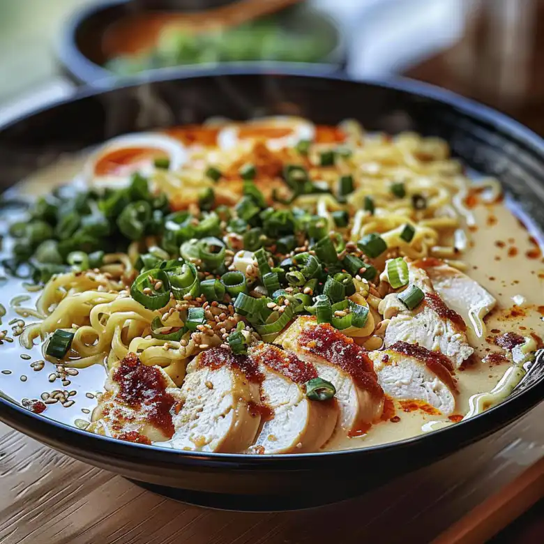 A comforting and flavorful Creamy Garlic Chicken Ramen made with tender chicken, a rich garlic-infused broth, and springy noodles. Perfect for a satisfying weeknight meal.
