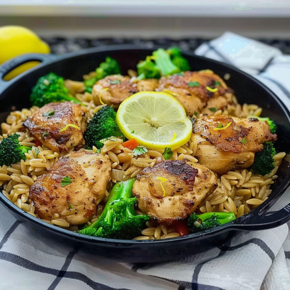 A quick and flavorful weeknight meal featuring tender chicken, crisp vegetables, and orzo pasta tossed in a bright lemon sauce. Easy to make and delicious!