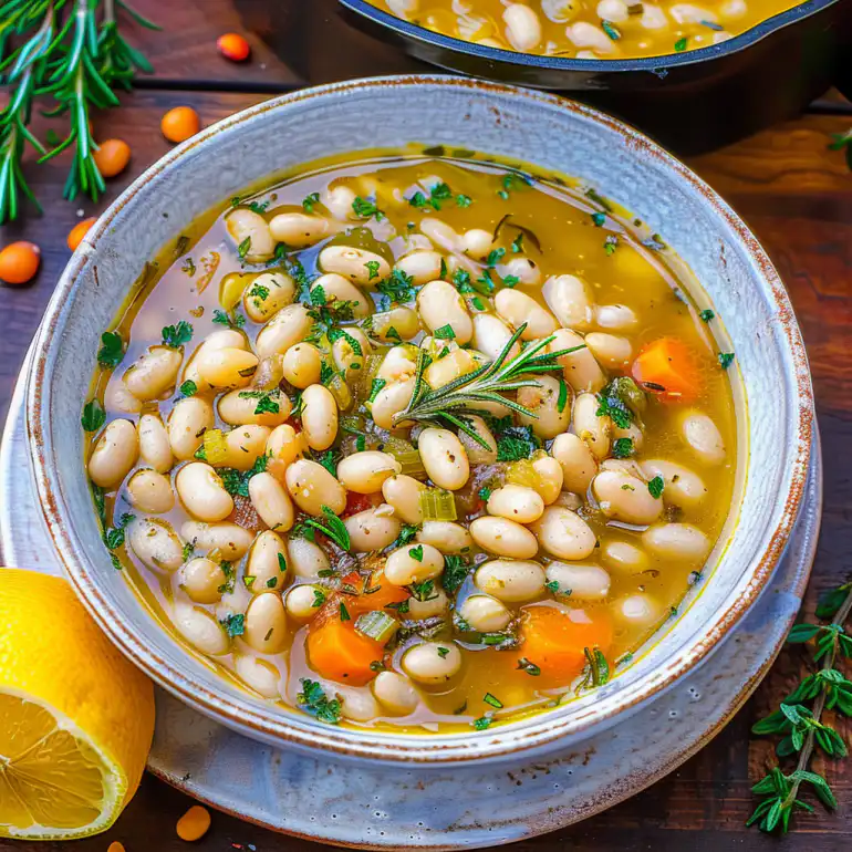 A hearty, creamy soup featuring tender white beans and fragrant fresh rosemary in a rich, flavorful broth. Perfect comfort food that’s both nourishing and satisfying.