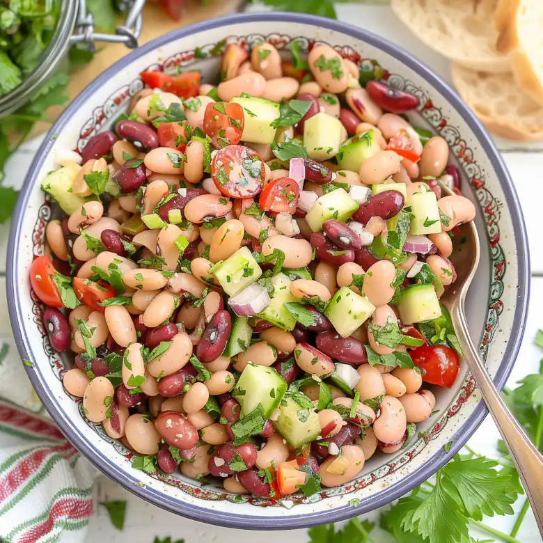 This Mediterranean bean salad has become my go-to dish for summer potlucks and weeknight dinners alike. The combination of tender beans, crisp vegetables, and tangy dressing creates a satisfying meal that gets better as it sits. I’ve been making variations of this recipe for years, and it never fails to please.