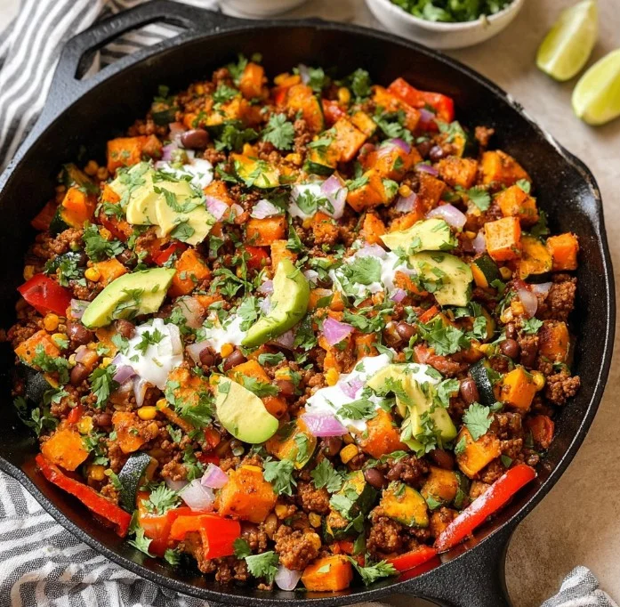 Can I substitute the ground beef with turkey? Absolutely! Ground turkey is a great lean option that works wonderfully in this skillet. Just adjust the cooking time as needed.