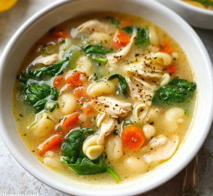 A hearty and zesty soup filled with tender chicken, creamy white beans, and vibrant spinach, perfect for chilly evenings.