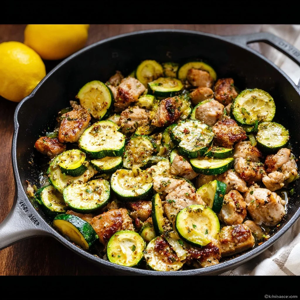 A vibrant blend of succulent chicken and tender zucchini tossed in a tantalizing garlic and lemon marinade, making an easy and healthy family dinner.