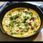 A delightful Mediterranean frittata filled with sautéed spinach, sundried tomatoes, and feta cheese, offering a burst of flavor in just 25 minutes.