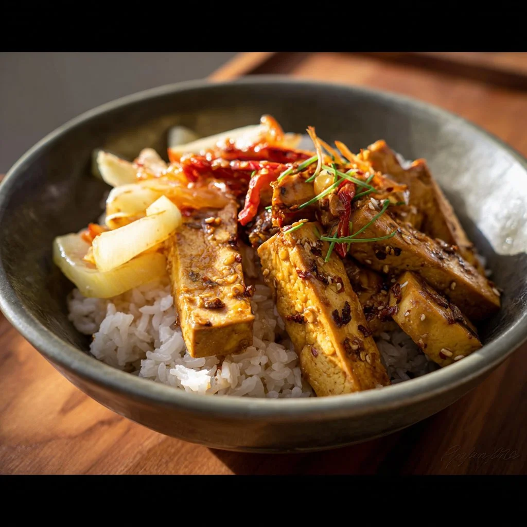 To serve this rice bowl at its best, consider a few delightful pairings. A side of miso soup or a simple garden salad drizzled with a light vinaigrette can elevate your meal. For a seasonal touch, add a handful of crisp edamame in summer or some roasted sweet potatoes in the colder months. A splash of chili oil can also add a fiery kick that’s perfect for spice lovers.