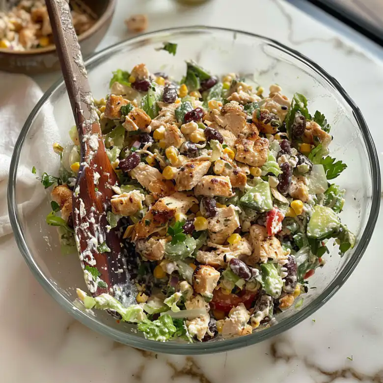 This methodical approach ensures every component is properly prepared and seasoned, resulting in a cohesive dish where each bite delivers the full spectrum of Southwest flavors and varied textures that make this salad so satisfying.