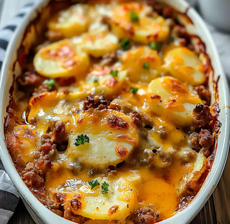 A hearty one-dish meal featuring ground beef, tender potatoes, and mixed vegetables in a creamy sauce. This comforting casserole feeds the whole family with minimal cleanup required.