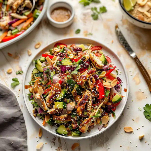 This sesame chicken salad has become my go-to meal when I want something satisfying but fresh. The combination of tender chicken, crisp vegetables, and that nutty sesame dressing creates a bowl that feels both nourishing and indulgent. I’ve been making variations of this recipe for years, and it never fails to deliver on flavor and texture.