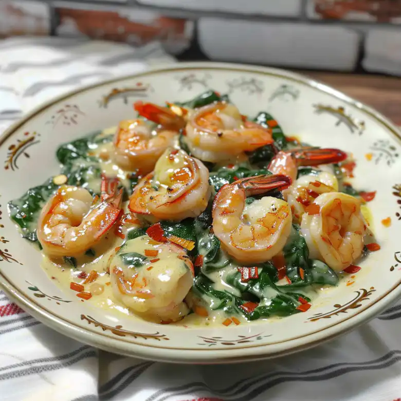 Rich and satisfying low-carb dinner featuring tender shrimp in a luscious cream sauce with fresh spinach. Ready in 25 minutes with only 5g net carbs per serving.