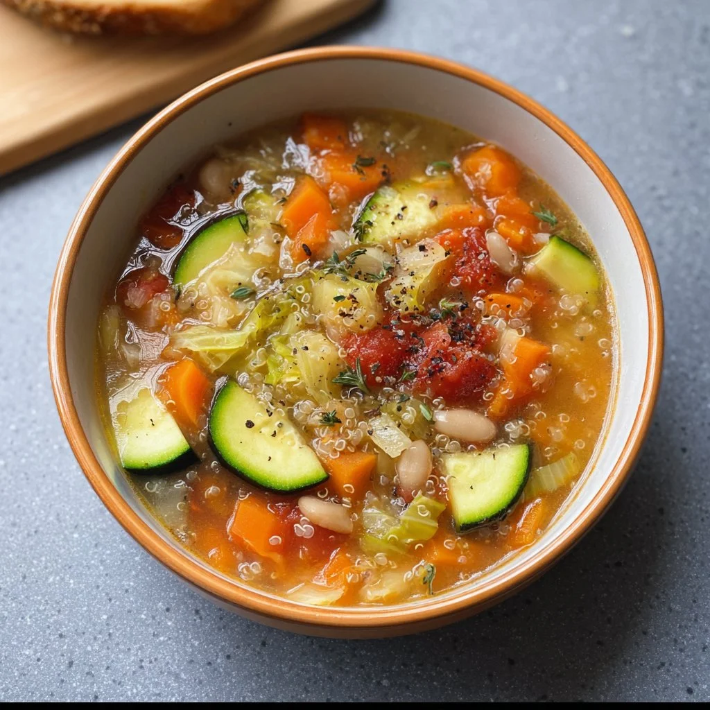A nourishing and hearty Vegetable Quinoa Soup packed with vibrant vegetables and protein-rich quinoa, perfect for chilly evenings.