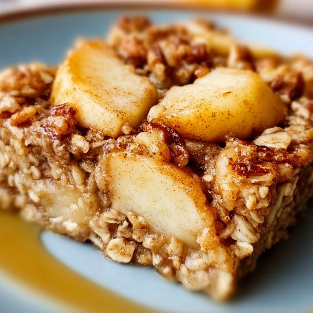 A heartwarming baked oatmeal dish filled with tender apples and cinnamon, perfect for cozy mornings.