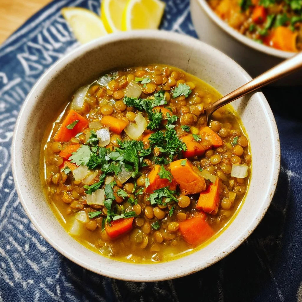 A hearty and healthy soup combining lentils with fragrant Moroccan spices and vibrant vegetables.