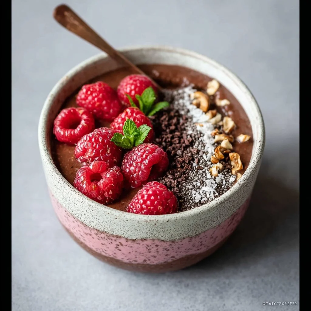A guilt-free dessert blending the rich creaminess of chocolate with the tart freshness of raspberries, packed with nutrients and fiber.
