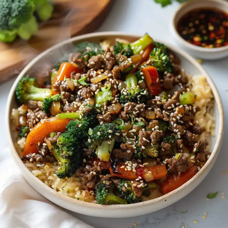 A quick and satisfying stir-fry featuring seasoned ground beef and crisp-tender broccoli in a savory Asian-inspired sauce. Ready in just 25 minutes.