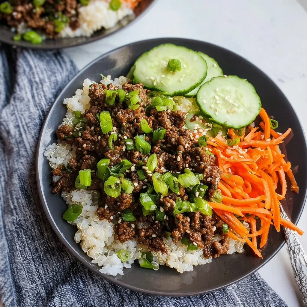 A comforting Korean Beef Bowl packed with lean protein, vibrant vegetables, and aromatic flavors, perfect for a quick weeknight dinner.