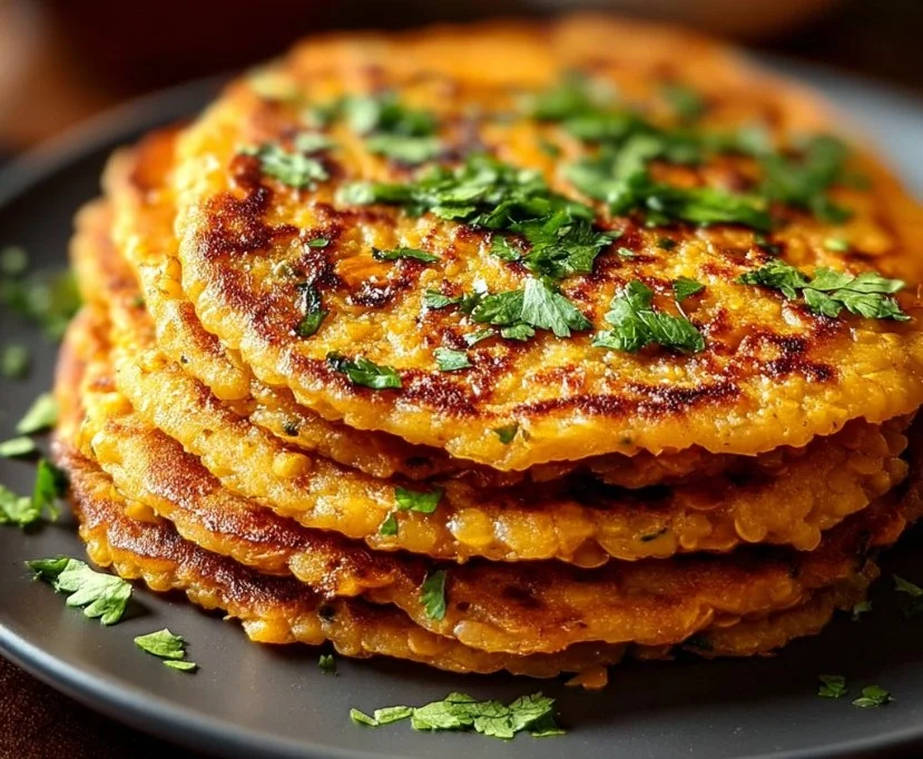 Quick and flavorful red lentil pancakes packed with protein and fiber, perfect for a weeknight meal.