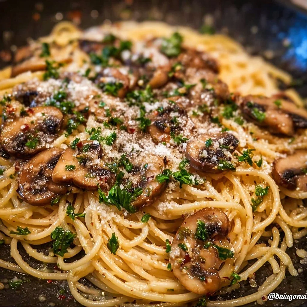 A comforting and flavorful spaghetti dish featuring sautéed mushrooms and garlic, perfect for any night of the week.