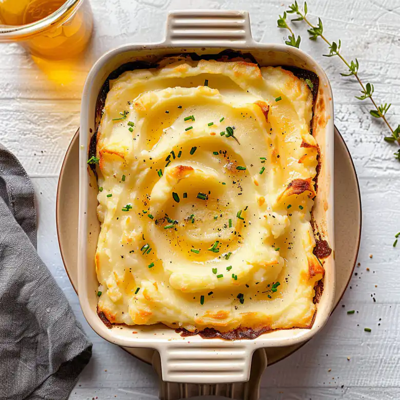Silky smooth mashed potatoes finished in the oven with a golden top and incredibly creamy interior. This two-step method creates the most luxurious texture.